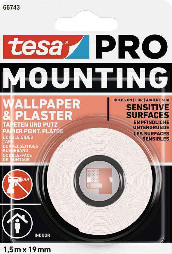 Páska tesa® Mounting PRO, montážna, na tapety a omietky, lepiaca, 19 mm, L-1,5 m