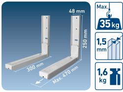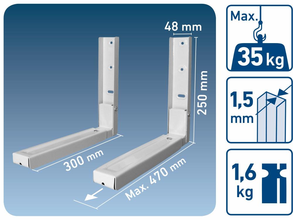 - biela kovová konštrukcia s nosnosťou až 35kg, montáž na stenu pomocou skrutiek a hmoždiniek, ktoré sú súčasťou balenia