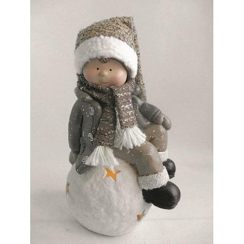 - Postavička MagicHome Vianoce, Chlapček na snehovej guli LED, magnesia