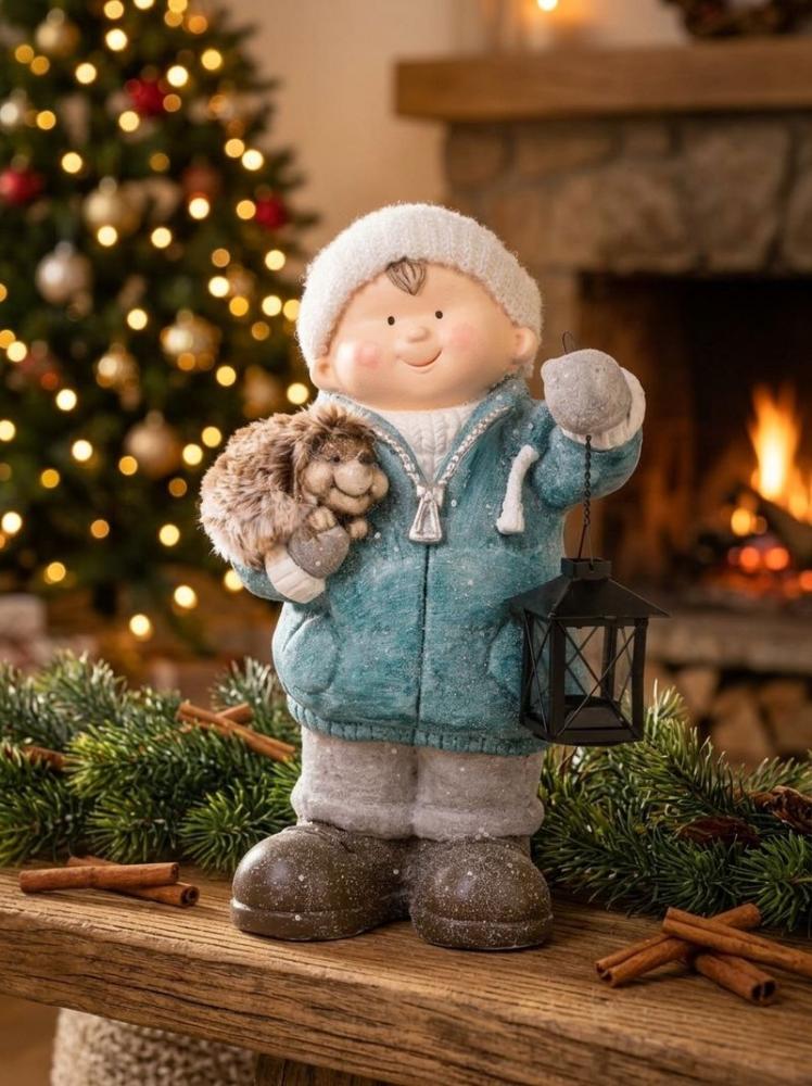 Postavička MagicHome Vianoce, Chlapček s lampášom a ježkom, keramika, 23x20x39,5 cm