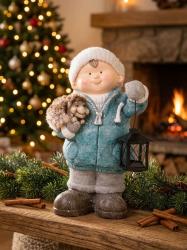 - Postavička MagicHome Vianoce, Chlapček s lampášom a ježkom, keramika, 23x20x39,5 cm