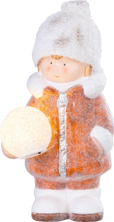 - Postavička MagicHome Vianoce, Chlapček so snehovou guľou, 1 LED, 14x13x25 cm