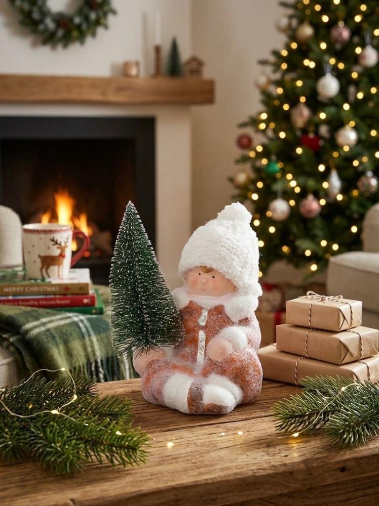 - Postavička MagicHome Vianoce, Chlapček so stromčekom, terakota, 14,5x13x17 cm