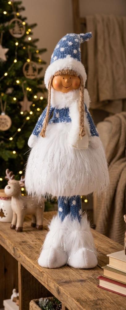 Postavička MagicHome Vianoce, Dievčatko s hustou sukňou, látkové, modro-sivé, 14x11x51 cm