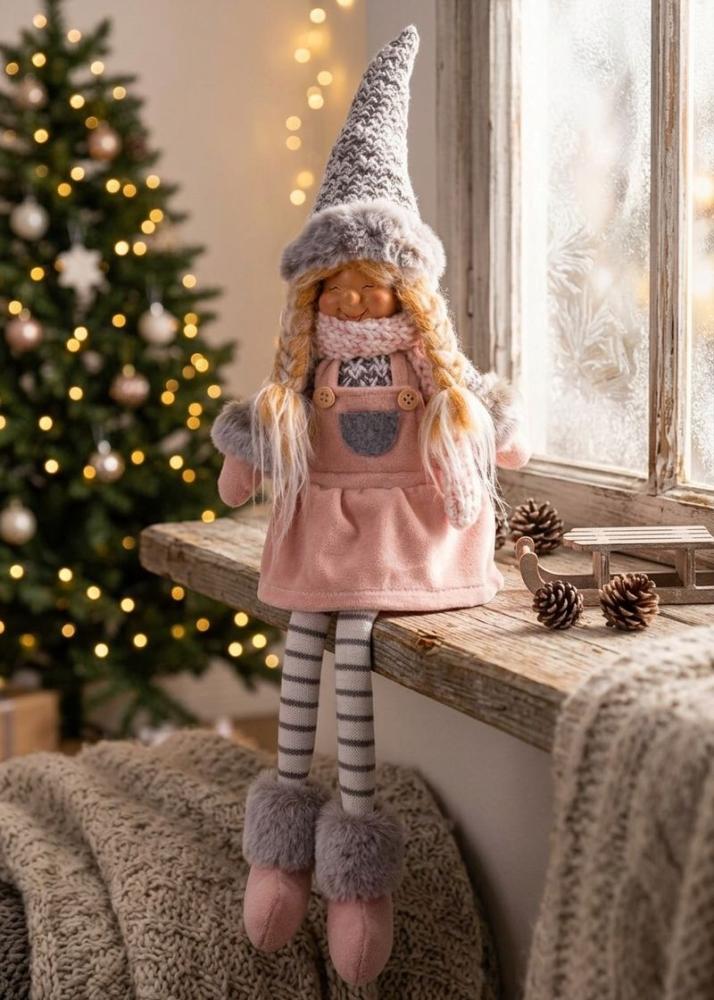 Postavička MagicHome Vianoce, Dievčatko s vysokým klobúkom, látkové, ružovo-sivé, 17x12x54