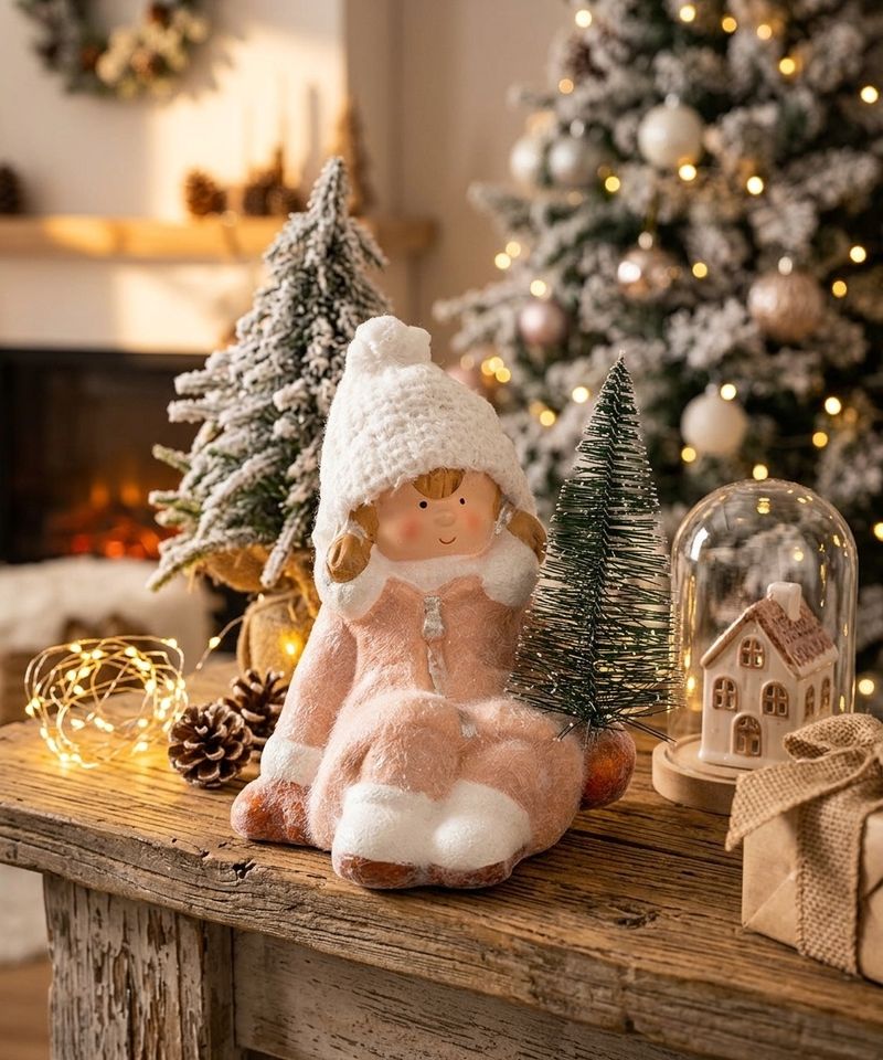 - Postavička MagicHome Vianoce, Dievčatko so stromčekom, terakota, 14,5x13x17 cm