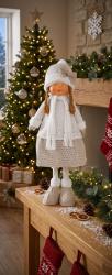 Postavička MagicHome Vianoce, Dievčatko v bielej čiapke, bielo-zlaté, látkové, 30x19x79 cm