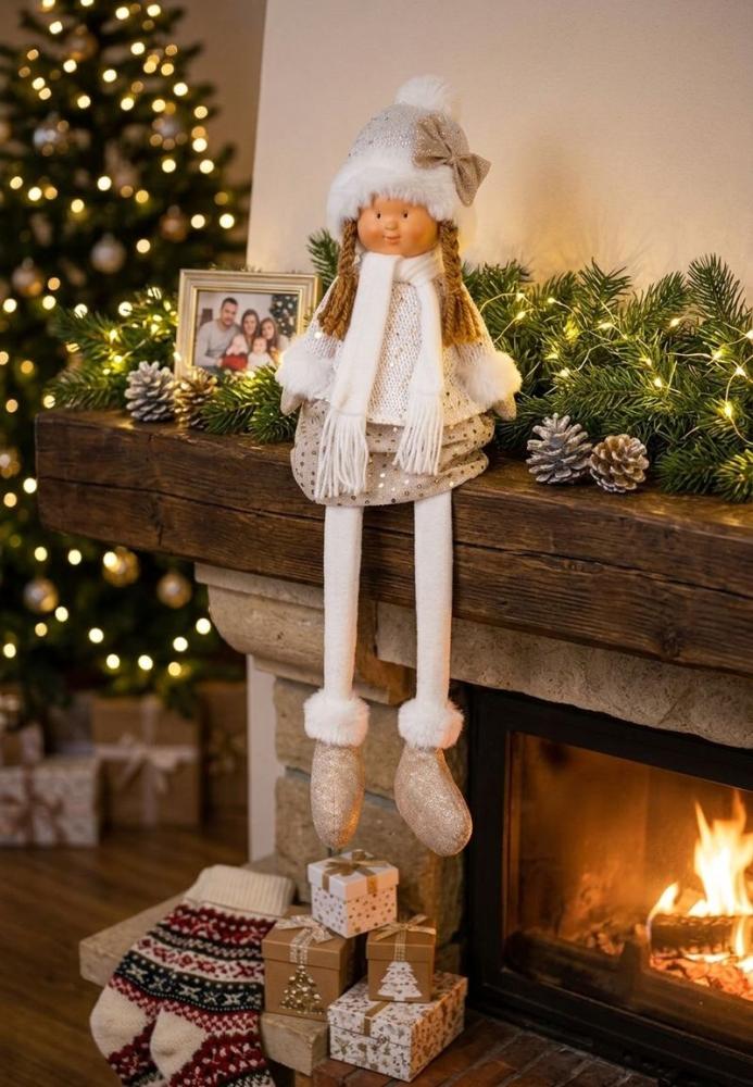 Postavička MagicHome Vianoce, Dievčatko v bielej čiapke s dlhými nohami, bielo-zlaté, látk