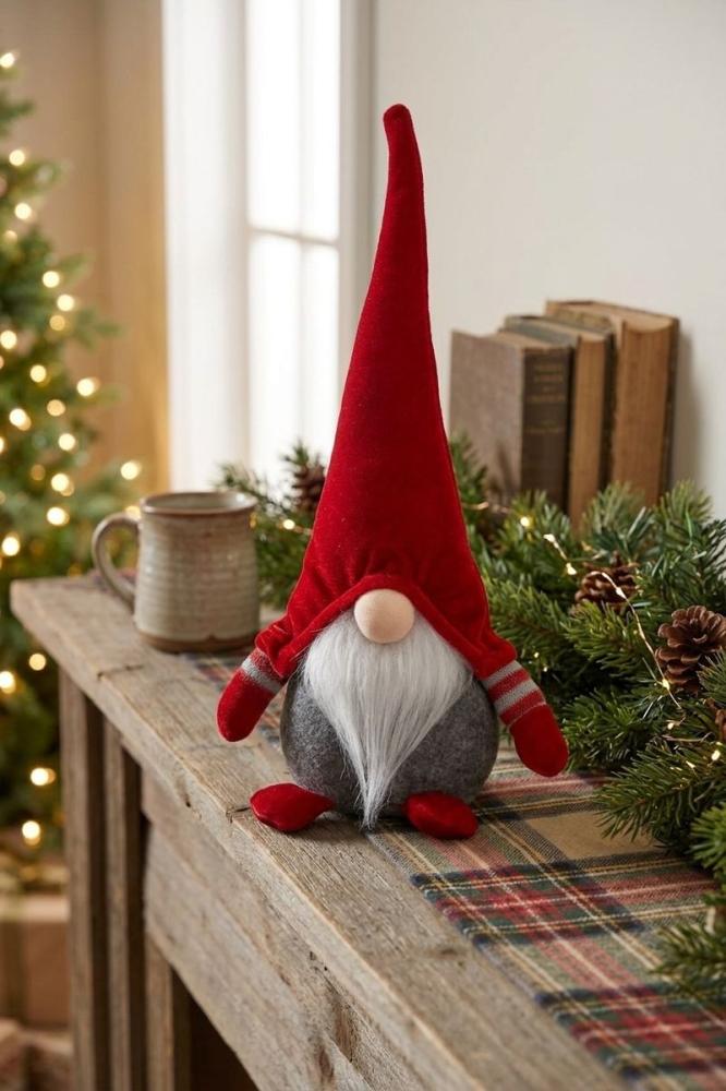 Postavička MagicHome Vianoce, Škriatok s krátkymi nohami, látkový, červeno-sivý, 15x9x33 c