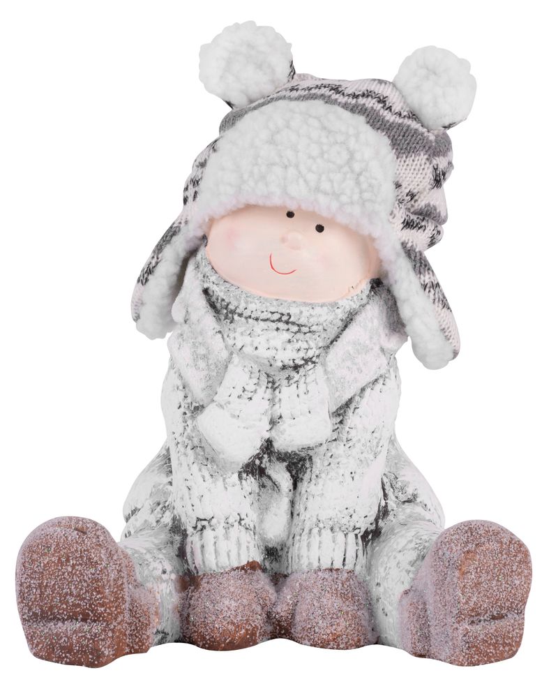 Postavicka Xecco 15553, Chlapec sediaci s čiapkou, terakota, 19 cm