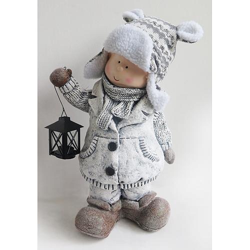 Postavicka Xecco 15688, Chlapec s lampášikom a čiapkou, magnesia, 46 cm