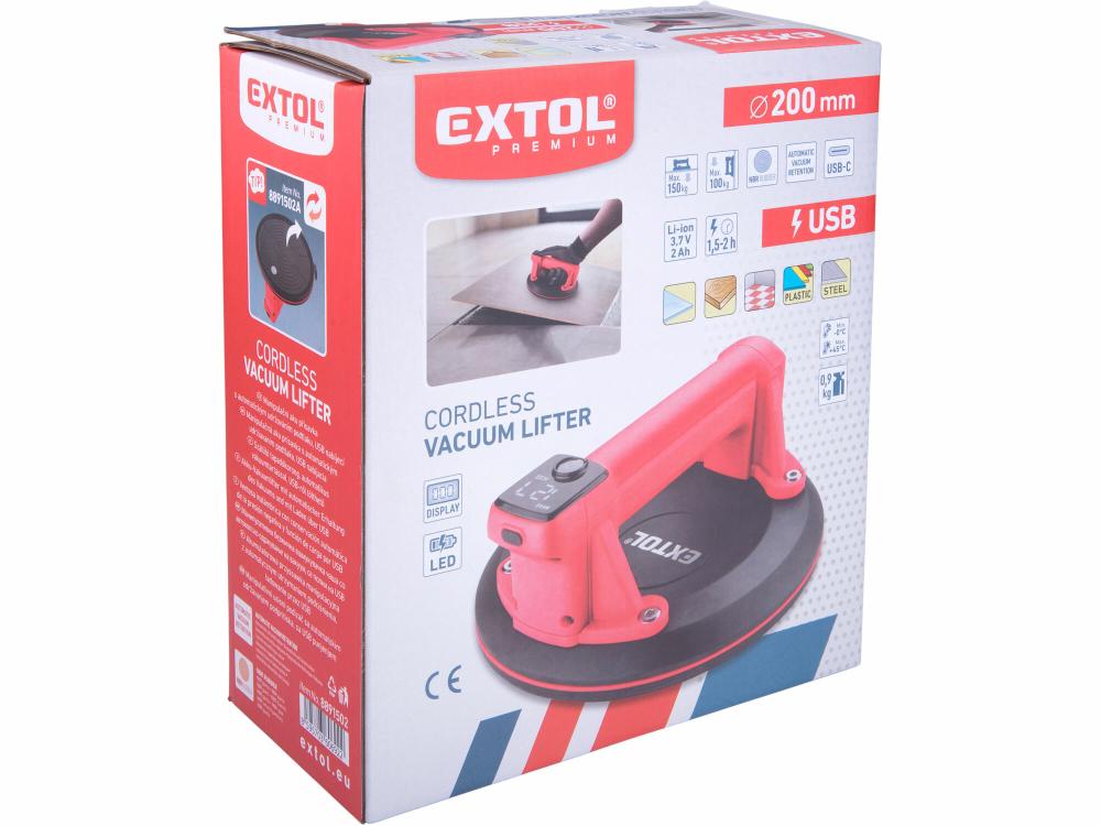 Prísavka na sklo akumulátorová, 200mm, max. 150kg, 3,7V/1,2Ah Lion, EXTOL PREMIUM