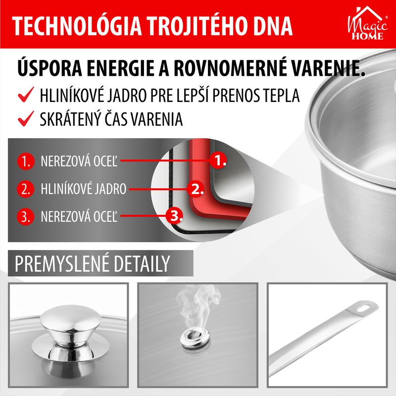 - Obsahuje hliníkové jadro pre rovnomerné rozloženie tepla