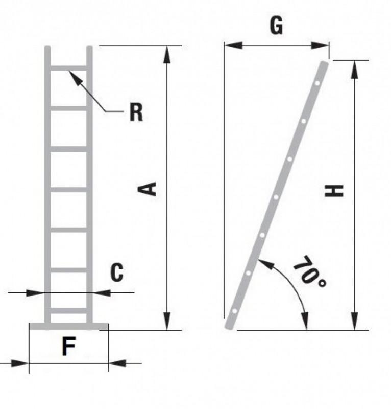 Jednoduchý jednodielny rebrík bez stabilizácie.Budte preto opatrní pri jeho používaní a dôsledne ho oprite o pevný podklad.