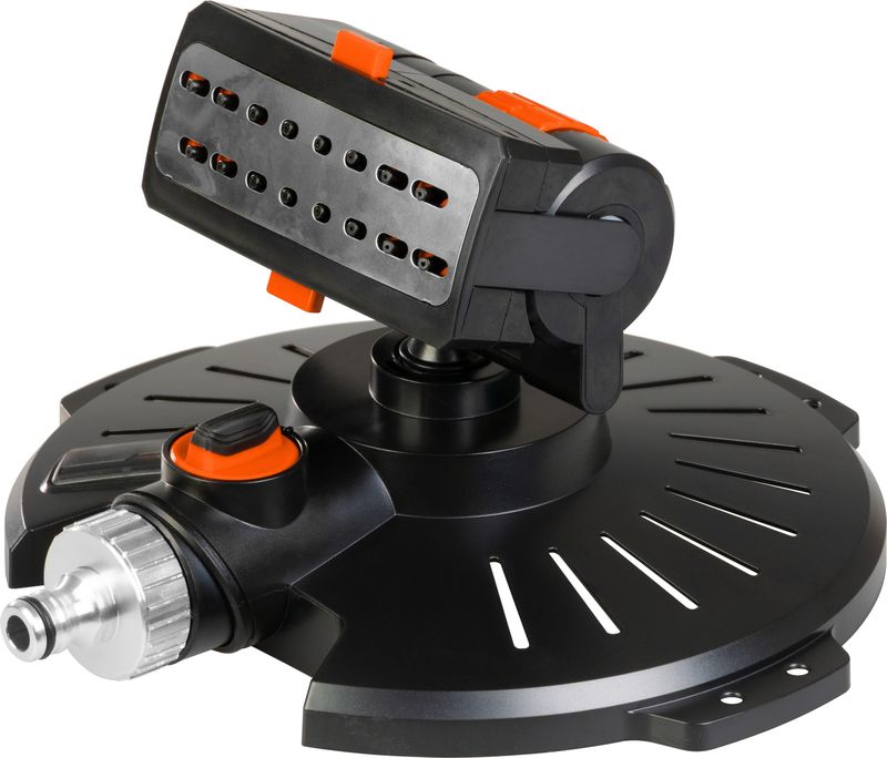 Strend Pro Garden BJ4615 je praktický oscilačný zavlažovač určený na rovnomerné polievanie trávnikov a záhrad. Vďaka 16 tryskám a nastaviteľnému rozsahu zavlažovania až do 180° zabezpečuje efektívne pokrytie plochy až do 216 m2.
