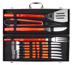 Sada obsahuje všetko náradie potrebné na bezproblémovú prípravu a konzumáciu grilovaných jedál. Všetko náradie je uložené v praktickom uzatvárateľnom kufríku, ktorý je ľahko prenosný. Obsah balenia kufríka je 1 ks vidlička, 1 ks kliešte, 1 ks obracačka, 1 ks veľký nôž, 6 ks malý nôž a 6 ks malá vidlička. Z dôvodu výskytu ostrých predmetov chráňte kurfík pred dosahom detí.