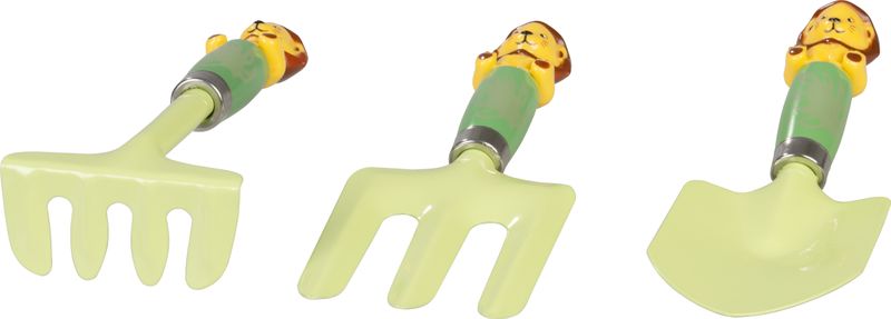 - 3-dielna sada: Obsahuje lopatku, hrable a vidly, základné nástroje prispôsobené pre detské ruky, čo umožňuje deťom aktívne sa podieľať na záhradných prácach.