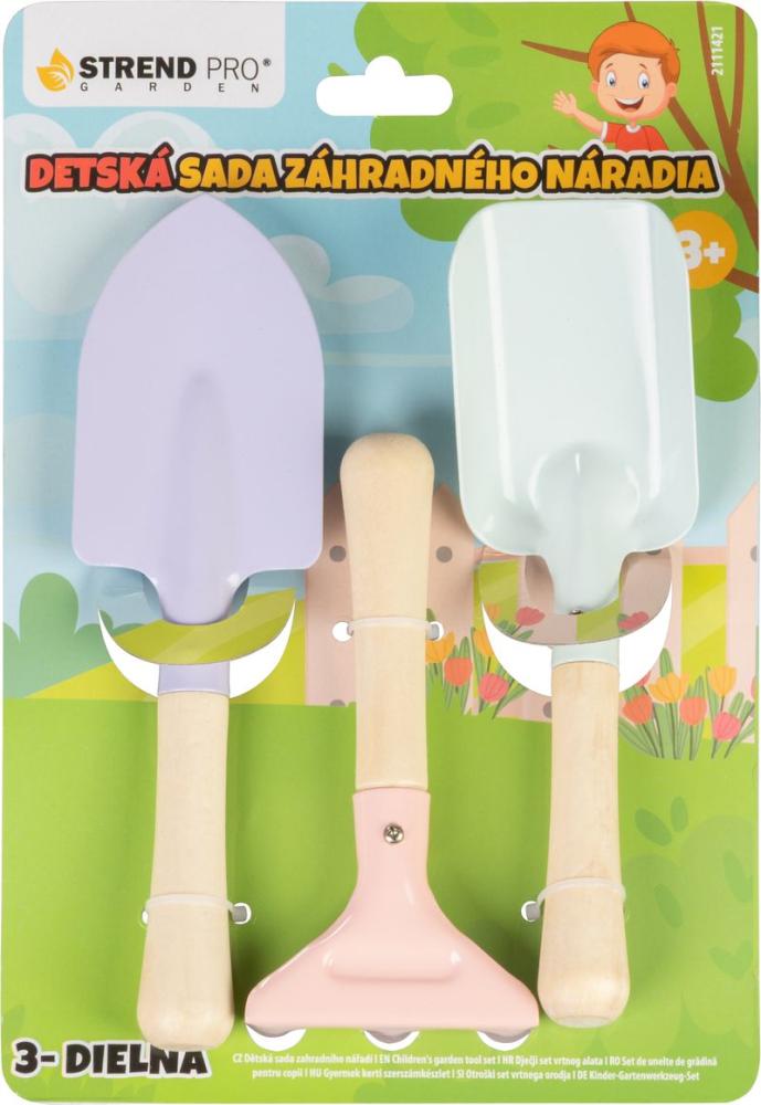- Sada náradia Strend Pro, záhradnícka, detská, 3-dielna, drevo + oceľ, lopatka hrable a rýľ