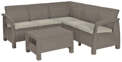 - Set terasový Allibert CORFU, cappuccino/sand, stôl, rohová pohovka
