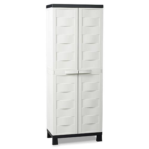 Skrinka s 2 dverami, priehradkou na náradie a 4 výškovo nastaviteľnými policami. Rozmery : 65x37x173 cm.
