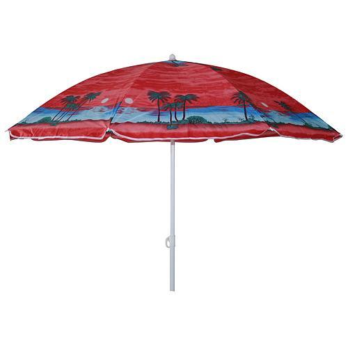 Slnečník je červenej farby s potlačou paliem a mora a je vhodným tienidlom pred slnkom. Tyč vychádzajúca zo stredu vrchnej časti je vyrobená z pevnej ocele. S výškou 200 cm a priemerom 19/22 mm poskytuje dostatočnú pevnosť. Slnečník poskytuje možnosť nastavenie požadovanej výšky pomocou zaistenia v stredovej časti. Rebrá podporujúce vrchnú časť majú priemer 2,7 mm. Vrchné pokrytie je vyrobené z nylonového materiálu, ktorý je veľmi odolný voči slnečnému žiareniu. Priemer vrchnej časti je 180 cm, čím poskytuje dostatočné pokrytie väčšej oblasti. Celková hmotnosť je iba 0,96 kg, vďaka čomu sú manipulácia a prenos veľmi jednoduchými. Slnečník je bez možnosti náklonu.