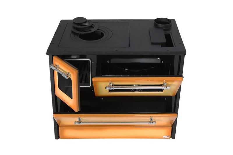 Sporák je vhodný na varenie, pečenie aj vykurovanie. Má jednoduchú obsluhu a úspornú prevádzku. Sporák disponuje varnými platňami, regulátorom prívodu vzduchu a prúdenia tepla, praktickými dvierkami ohniska a dvierkami rúry na pečenie. Varné platne a ohnisko sú vyrobené z liatiny. Praktická rúra na pečenie má dostatočnú šírku, a to 45 cm a na dvierkach sa nachádza praktický teplomer. Vyberateľný rošt v nej môžete vložiť na spodnú a strednú pozíciu. V sporáku sa tiež nachádza veľká časť na odkladanie dreva a nádoba na popolník.