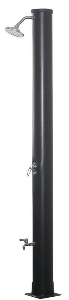 Záhradná solárna sprcha je konštruovaná ako jednodielne teleso, ktorého PP plášť slúži ako zásobník teplej vody a zároveň funguje ako slnečný kolektor. Prívodné vodovodné armatúry sú uložené vo vnútri telesa. Ovládacia páka, sprchová hlavica a držiak sprchovej hlavice, sú umiestnené mimo sprchovacieho telesa. V spodnej časti sa nachádza základňa, ktorá slúži na upevnenie sprchy. V zadnej spodnej časti je umiestnená napúšťacia armatúra. Normálnym javom je, že po uzavretí pákovej batérie zo sprchovacej hlavice ešte niekoľko sekúnd vyteká voda. Disponuje 1 pákovou batériou.