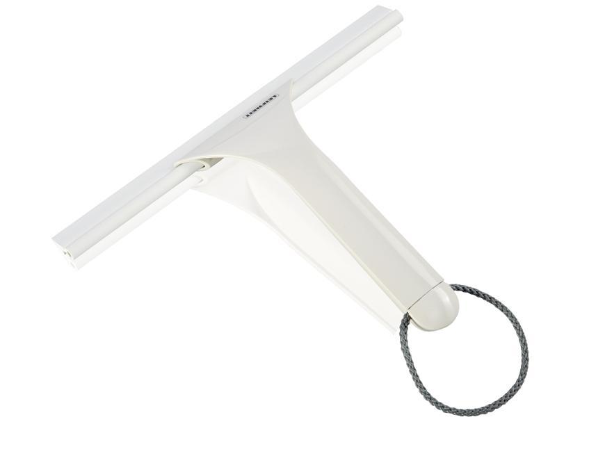Ideálna stierka pre sprchové kúty zo skla, akrylu alebo dlaždíc, stieracia časť je z bielej gumy, teda nerobí škvrny, vrátane remienka na zavesenie, šírka 24 cm, záruka 3 roky.