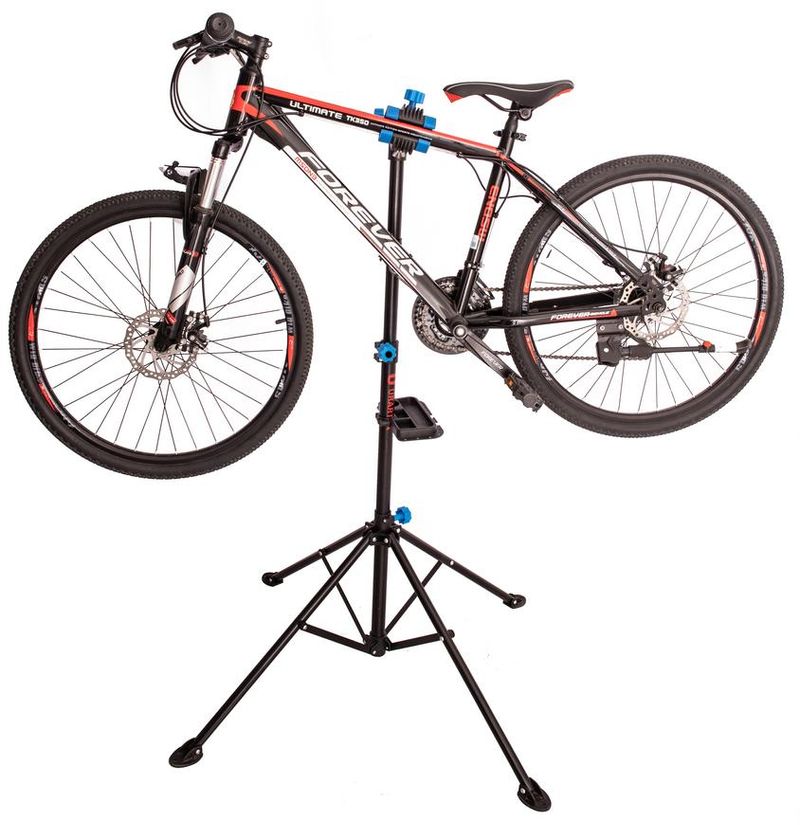 Praktický stojan na bicykel Strend Pro využijete pri servisných prácach Vášho bicykla. Bez námahy tak vymeníte koleso či brzdy. Stabilný vďaka štvornožke. Disponuje odkladacím magnetickým priestorom na náradie. Výškové nastavenie stojanu je od 109 cm až do 190 cm s otáčaním 360°. Veľkosť rámu bicykla, ktorý na stojan dokážete upevniť, je 22-55 mm. Nosnosť stojanu je 30 kg.
