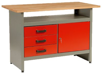 - Stôl 1 US, pracovný, oceľový plech, 3x zásuvka, 1215 x 610 x 800 mm