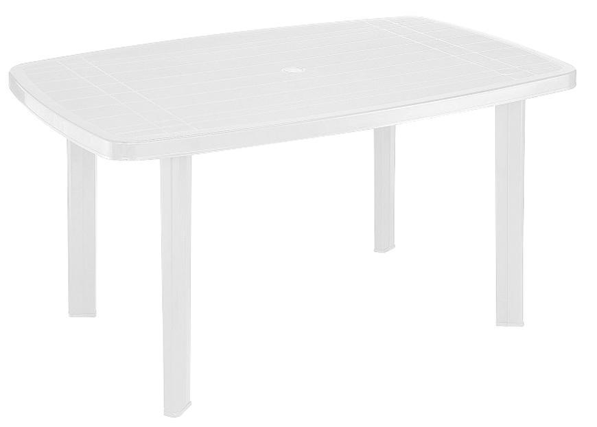 Klasický biely plastový stôl je určený pre vonkajšie využitie. Stôl je možné umiestniť do záhrady alebo na terasu. Výhodou stola je otvor na slnečník v jeho strede, ktorý vám poskytne príjemné tienenie. Stôl je vďaka plastovému povrchu veľmi pevný, ale tiež ľahký na údržbu a skladanie. Rozmery stola sú 137 x 85 x 72 cm.