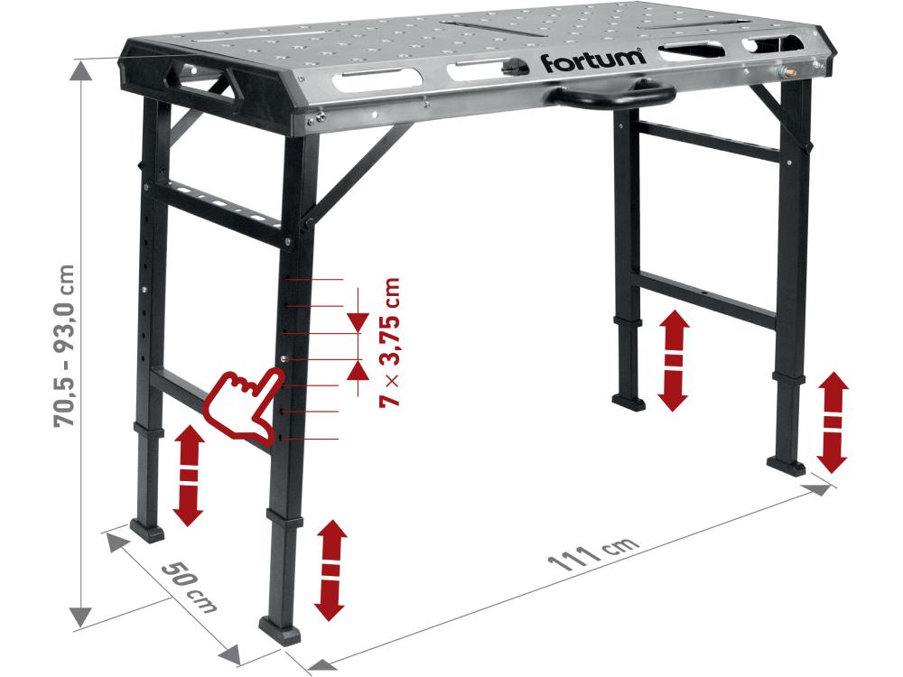 - Stôl zvárací skladací, max. 454kg, hrúbka 2mm, 107x53cm, výška 70-93cm, fixačné otvory 20m