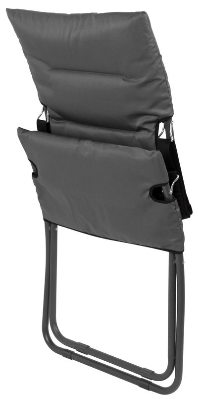 Ľahká, pohodlná skladacia stolička Strend Pro v sivej farbe sa skvele hodí na dvor, záhradu, festivaly či kempovanie alebo rybárčenie. Uložíte ju kdekoľvek potrebujete, zložíte ju ľahko jednou rukou a nezaberá veľa miesta. Jej rozmery sú: 60x60x90 cm.