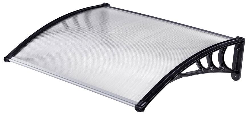 - striešky rovnakej hĺbky je možné vedľa seba spájať a vytvoriť tak ľubovoľne dlhý prístrešok podľa Vašej potreby. V balení nájdete polykarbonátový panel, dva držiaky z tvrdeného odolného plastu, prednú spevňovaciu hliníkovú lištu a kotviace skrutky.