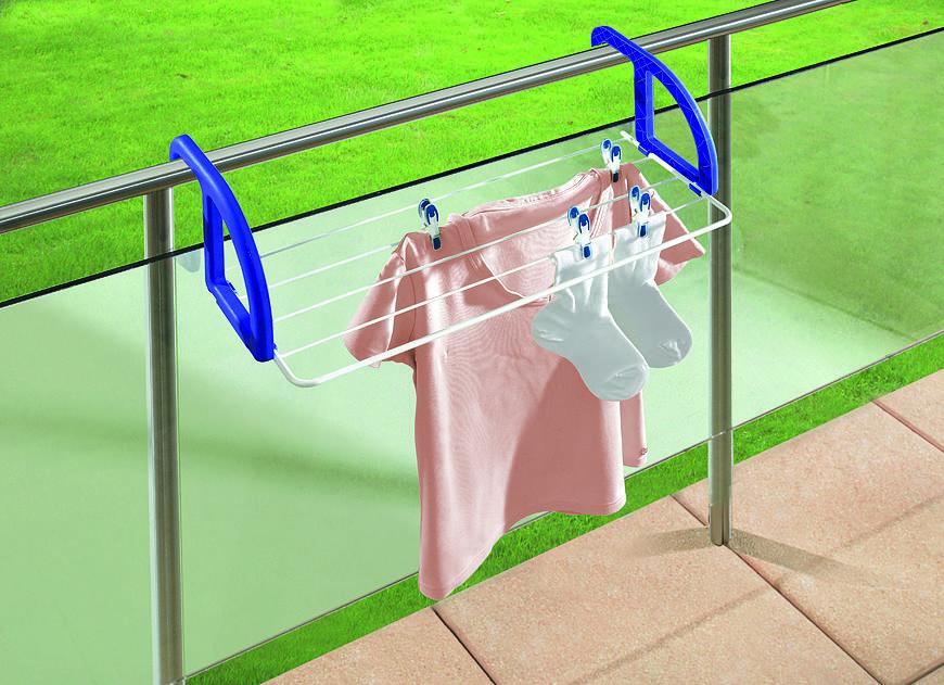 Praktický univerzálny závesný sušiak na bielizeň, tyče potiahnuté plastovým plášťom, odolný voči UV žiareniu, vhodný na vonkajšie použitie, na zavesenie na balkón, dvere, okenný parapet a pod., 2,5 m sušiacej plochy, záruka 5 rokov.