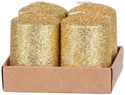 - Sviečka MagicHome Vianoce, 4x6 cm, valcová, bal. 4 ks, zlatá, s glitrami, adventná