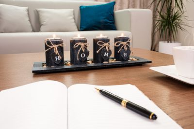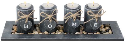 - Svietnik MagicHome, HOME, 39x12,5x10 cm, čierny, na podnose, na čajové sviečky