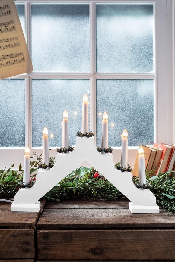 - Svietnik MagicHome Vianoce, 7 LED teplá biela, biely, 2xAA, interiér, 39x31 cm