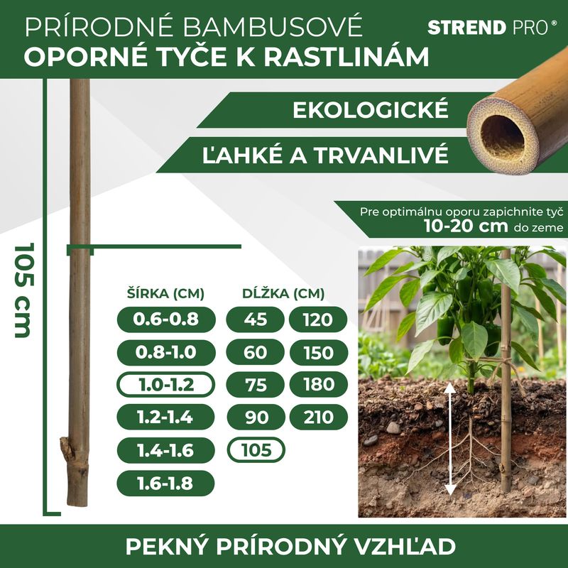 - Tyč Garden KBT 1050/10-12 mm, bal. 10 ks, bambus, oporná k rastlinám