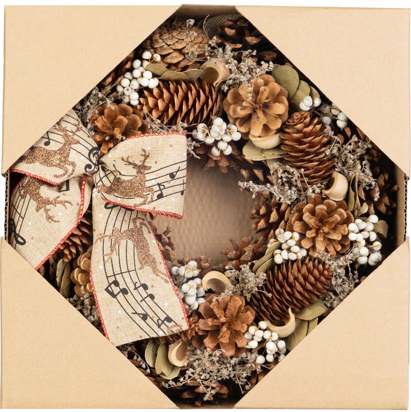Dekor je doplnený ozdobnou mašľou s hudobným motívom, ktorá dodáva vencu originálny a tradičný vzhľad. Veniec má praktické pútko na zavesenie, takže ho jednoducho umiestnite na dvere, stenu alebo okno.