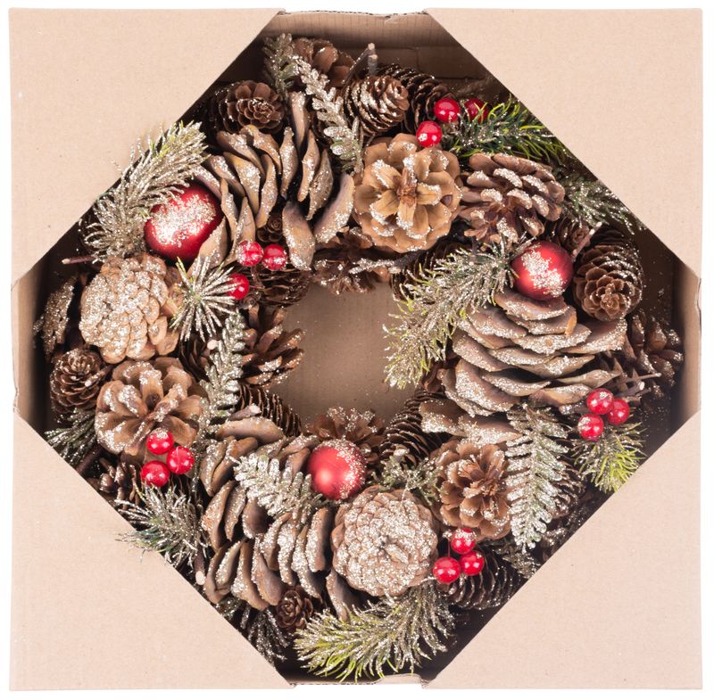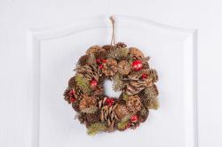 Veniec MagicHome Vianoce, so šiškami, čečina, závesný, 30x08 cm