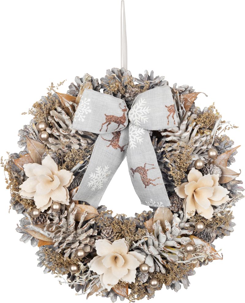 Veniec MagicHome Vianoce, závesný, prírodný, s mašľou, 30 cm