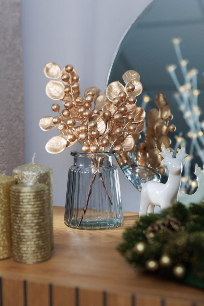 - Vetvička MagicHome Vianoce, s bobuľkami, zlatá, 27 cm