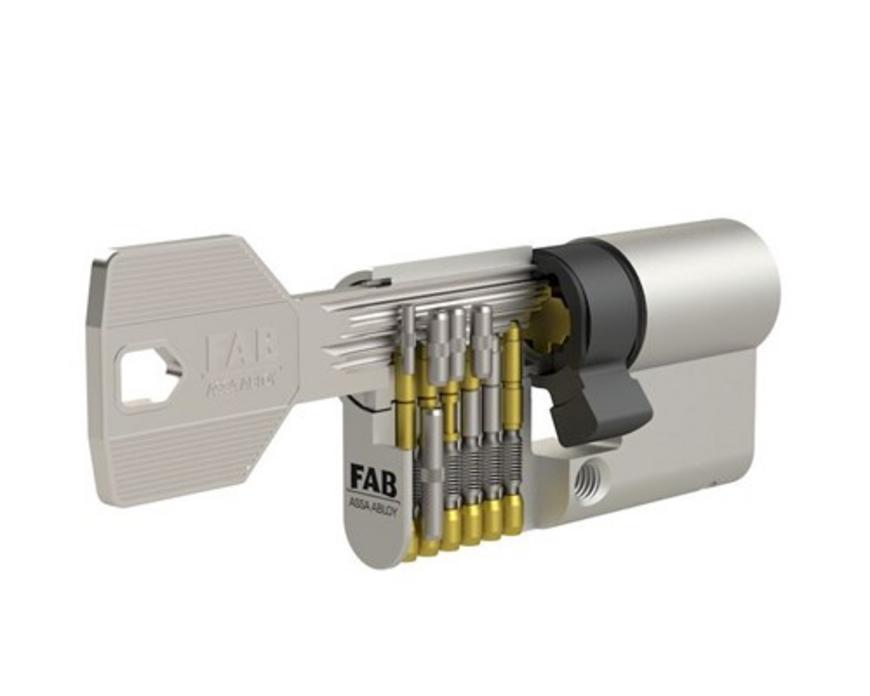 Cylindrická vložka FAB je určená na dvere vyžadujúce trvale vysokú bezpečnosť zaistenia. Vložka má najvyššiu úroveň zabezpečenia - 4. bezpečnostnú triedu (RC4 /BT4). Vhodné napríklad na vchodové dvere bytového domu, vstupné dvere, kancelárske dvere, školské dvere či na priemyselné objekty. Obsahuje 6 stavítkový uzamykací systém. Ochrana proti odvŕtaniu telesa. Patentované paracentrické profily. Materiál: mosadz, povrchová úprava matný nikel. Štandardne dodávané s 5 predĺženými oceľovými kľúčmi. Rozmer: 35+45 mm.