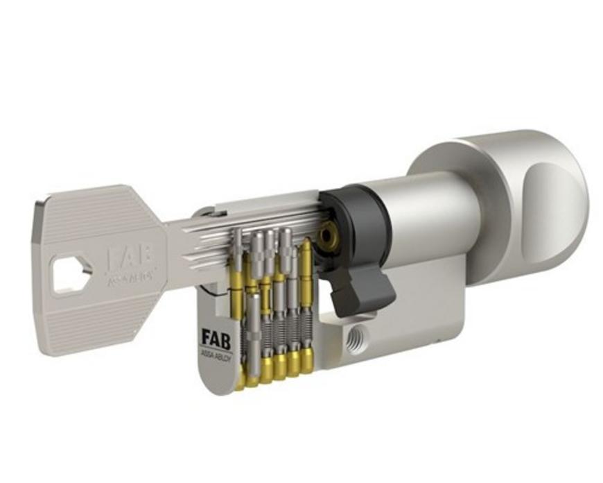 Cylindrická vložka FAB je určená na dvere vyžadujúce trvale vysokú bezpečnosť zaistenia. Vložka má najvyššiu úroveň zabezpečenia - 4. bezpečnostnú triedu (RC4 /BT4). Vhodné napríklad na vchodové dvere bytového domu, vstupné dvere, kancelárske dvere, školské dvere či na priemyselné objekty. Obsahuje 6 stavítkový uzamykací systém. Ochrana proti odvŕtaniu telesa. Patentované paracentrické profily. Materiál: mosadz, povrchová úprava matný nikel. Štandardne dodávané s 5 predĺženými oceľovými kľúčmi. Rozmer: 30+35 mm.