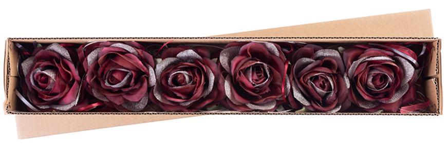 Vianočná dekorácia MagicHome ruža so stonkou dotvorí čarokrásnu atmosféru Vianoc vo vašom domove. Farba je bordová. Veľkosť kvetu je 10 cm a dĺžka kvetu je 18 cm.Balenie obsahuje 6 kusov.