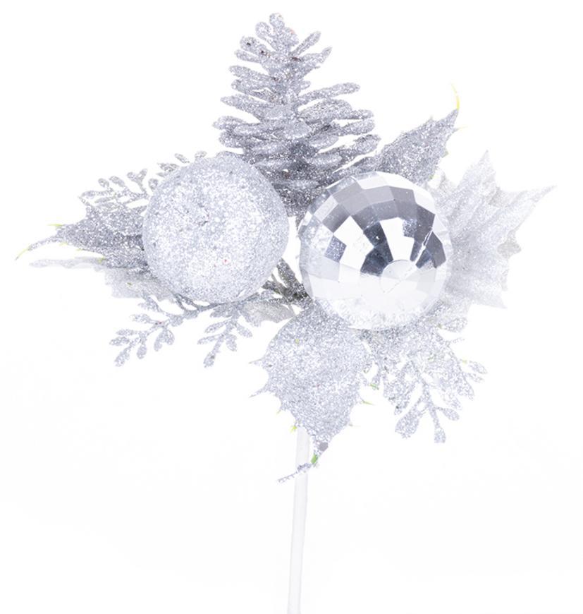 X Vetvička MagicHome Vianoce, s jablkom, strieborná, 15 cm, bal. 6 ks