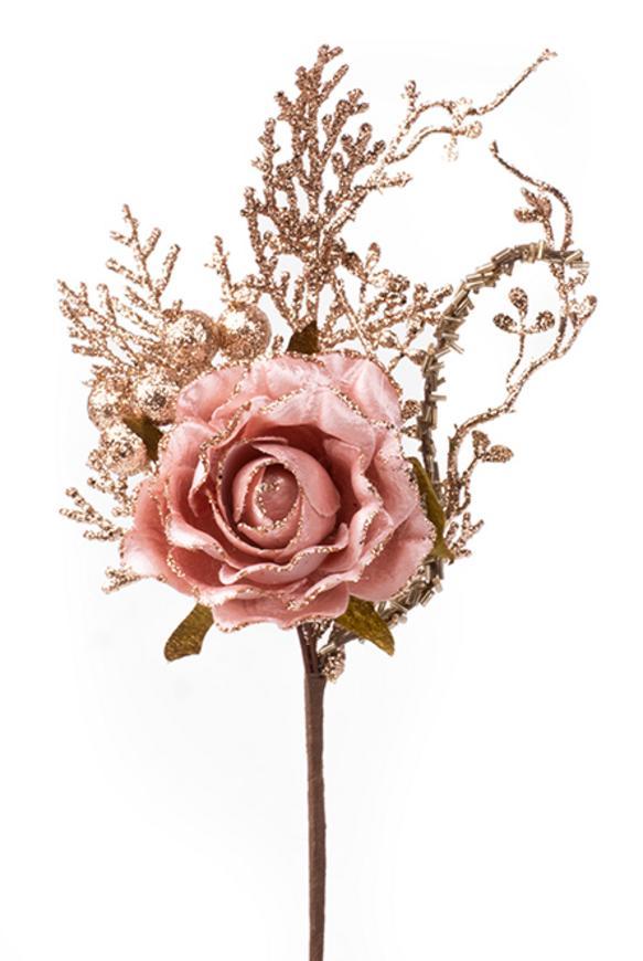 - X Vetvička MagicHome Vianoce, s ružou, ružovo - zlatá, 26cm, bal. 6 ks