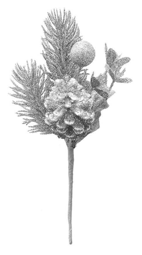 Vianočná dekorácia MagicHome vetvička so šiškou dotvorí čarokrásnu atmosféru Vianoc vo vašom domove. Farba je strieborná. Výška je 21 cm. Balenie obsahuje 6 kusov.