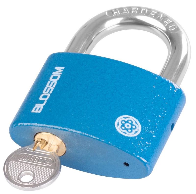 Zámok Blossom je určený na uzamykanie brán, dverí a skríň. Je to visiaci zámok so šírkou 63 mm. Súčasťou sú aj 3 náhradné kľúče.